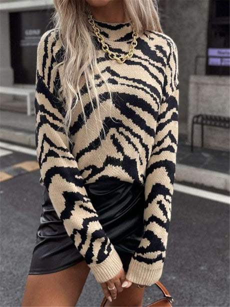 Autumn And Winter Loose Pullover Zebra Pattern Knitted Sweater