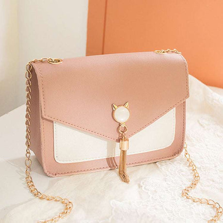 Women's Casual Small Square Crossbody Bag with Cat Lock Chain