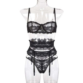 Sultry Lace 3-Piece Lingerie Set with Transparent Bra