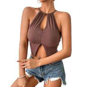 Introducing the Hot Girl Top Tight Halter Spaghetti Straps Vest. Designed for a snug fit, this vest accentuates your body's curves and features elegant spaghetti straps and a halter neckline. Perfect for a stylish and comfortable look.