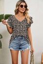 Elevated Casual V Neck Short Sleeve Patterned Top