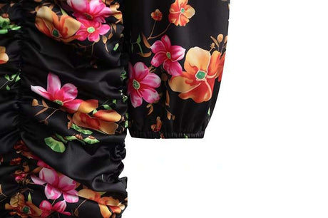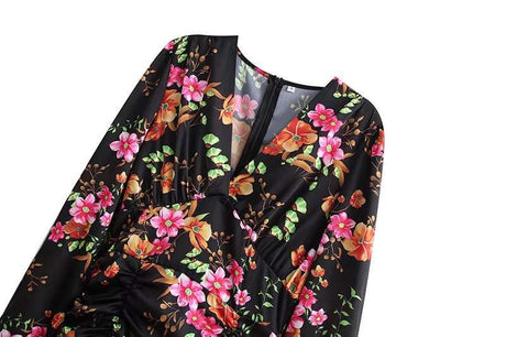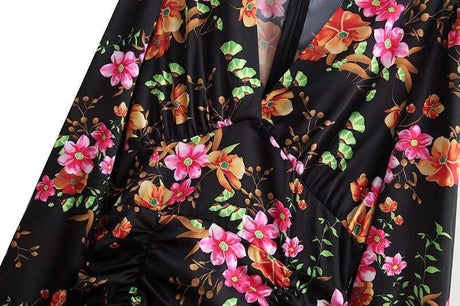 Women's V-neck Long Sleeved Pleated Slim Hip Dress
