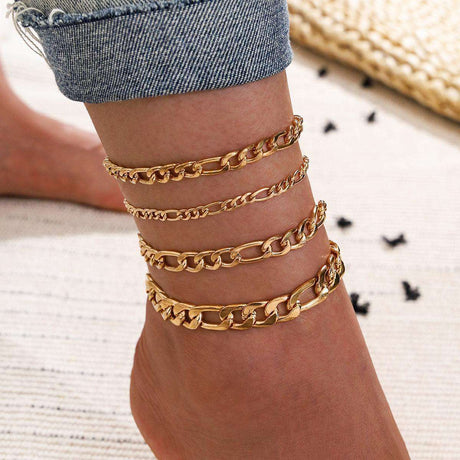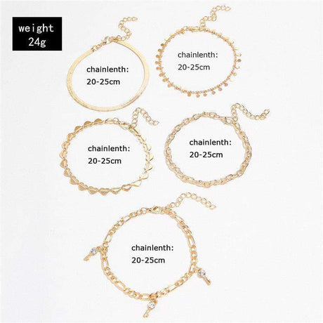 Gold Heart Crystal Key Anklet Set - Pack of 5
