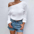 Solid-Color Knitted Large Neck Sweater - White / L / Female is backordered and will ship as soon as it is back in stock.