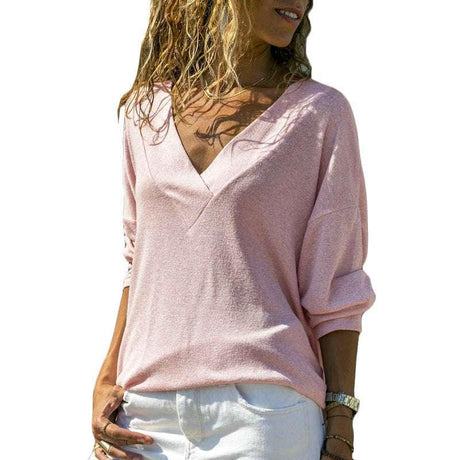 Solid Color V-Neck Long Sleeve Knitted Sweater