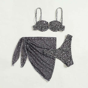 Three-piece Floral Bikini Swimsuit - Black / L / Adult is backordered and will ship as soon as it is back in stock.