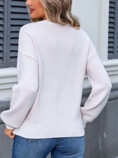 Angel Wings Bow Graphic Round Neck Long Sleeve Sweater