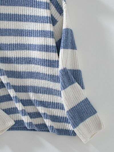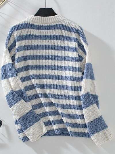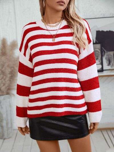 Striped Round Neck Long Sleeve Sweater - Deep Red / S is backordered and will ship as soon as it is back in stock.