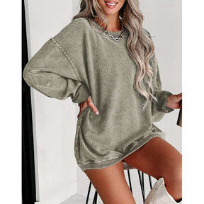Trendy Brushed Hoody with Batwing Sleeves and Loose Crew Neck