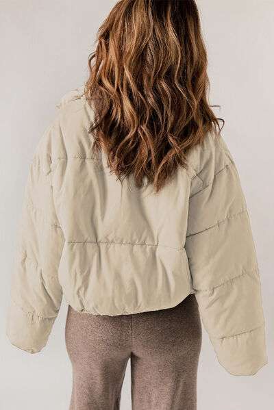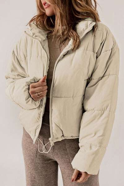 Zip Up Collared Neck Long Sleeve Winter Coat