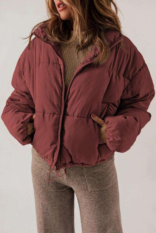 Zip Up Collared Neck Long Sleeve Winter Coat - Brick Red / XL is backordered and will ship as soon as it is back in stock.